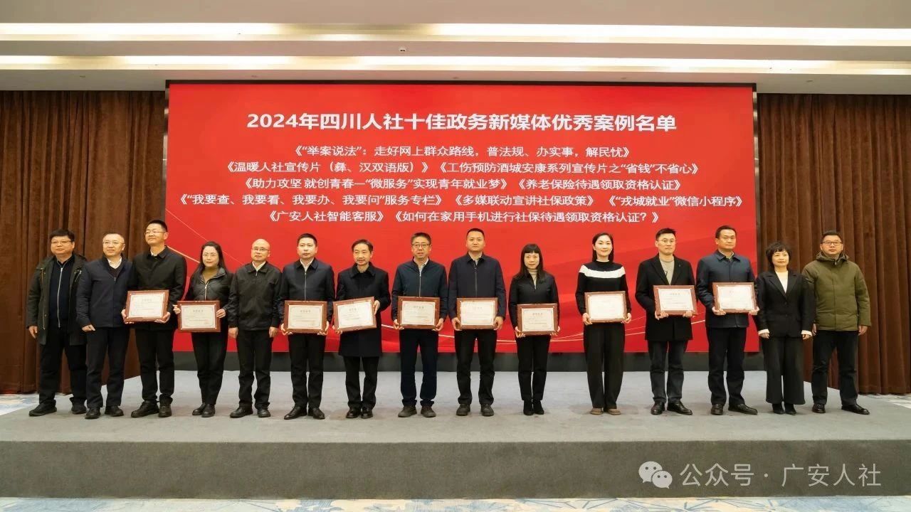 1月8日,2024年度四川人社系统政务新媒体影响力指数及政务新媒体优秀案例正式发布。在此次评选中,“广安人社” 微信公众号脱颖而出,荣获 “四川人社十佳政务新媒体账号”,由古天乐太阳集团城搭建运营的《广安人社智能客服》成功入选“四川人社十佳政务新媒体优秀案例”。