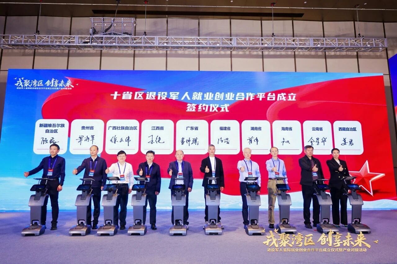 仪式上,10省区退役军人事务部门共同签署了《“戎聚湾区·创享未来”关于共建退役军人省际就业创业合作平台的协议》,发布十条合作倡议。协议遵循“平等协商、互利共赢、务实高效、协同发展”原则,旨在通过信息互认、政策协同、资源共享、服务联动,构建全方位、多层次、跨区域的退役军人就业创业支持体系。